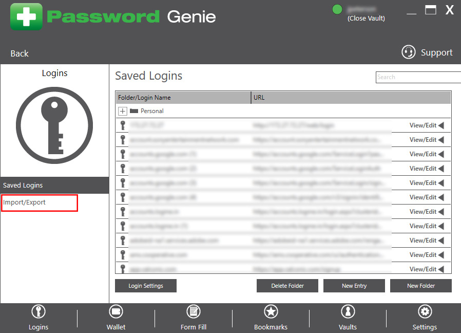 3. To Export only your Logins, click “Export”. Each Login will be exported into a CSV file with all information from each entry.